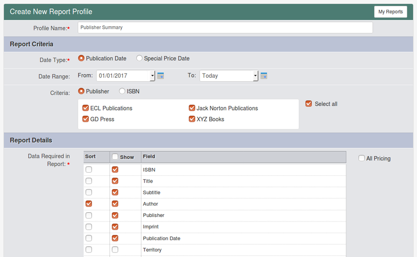 - Output reports via Spreadsheet and ONIX reports